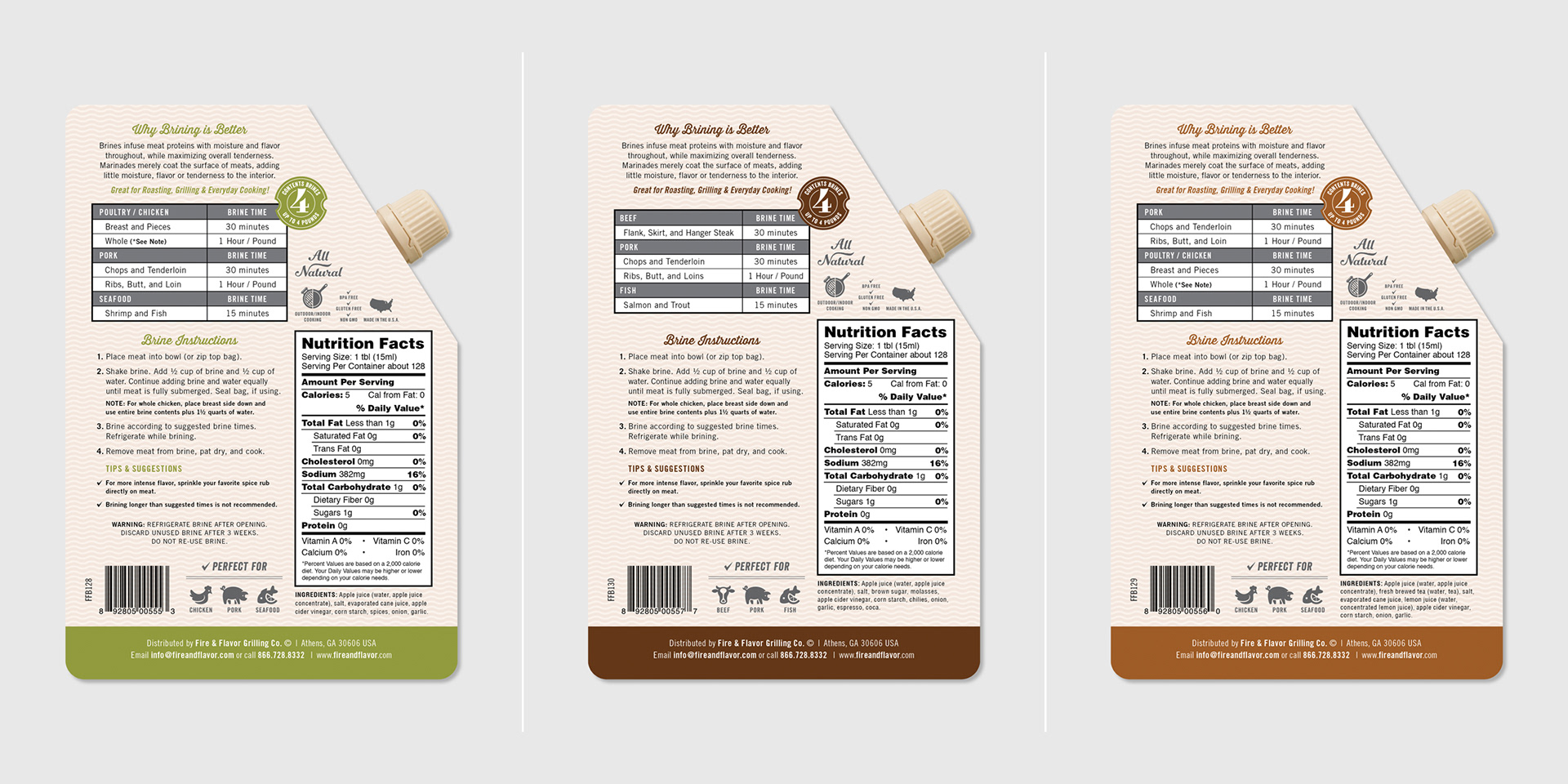 Packaging design for Fire & Flavor Grilling Co. Illustrations by John Burgoyne